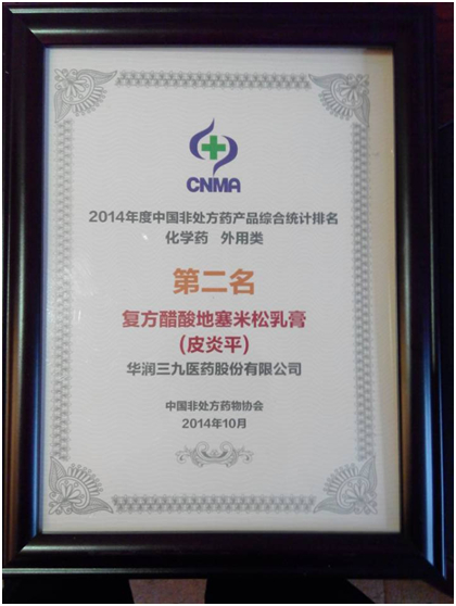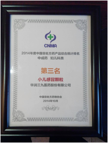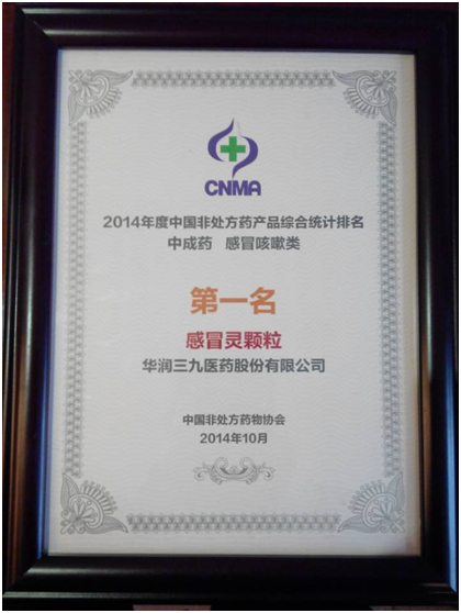 根據(jù)獲獎名單,在綜合統(tǒng)計排名方面,華潤三九榮獲企業(yè)綜合榜第一名;在非處方藥產(chǎn)品綜合統(tǒng)計排名方面,999感冒靈顆粒和強力枇杷露分別獲中成藥感冒咳嗽類的第一名和第四名,三九胃泰獲消化類第三名,999小兒感冒顆粒獲婦兒科類第三名,骨通貼膏獲外用類第四名,999皮炎平獲化藥外用類第二名,小兒氨酚黃那敏顆粒獲化藥兒科類第四名。此外,在品牌傳播獎項方面,華潤三九獲得五類獎項中的三大獎:最佳平面廣告獎,最佳電視廣告獎和最佳品牌傳播獎。 (曾福)