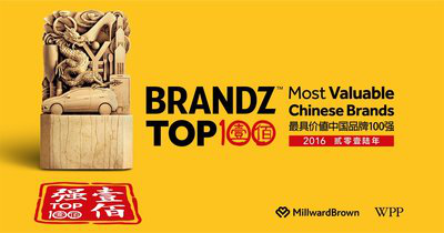BrandZ最具價值中國品牌100強是目前權威的中國品牌排行榜,由世界高端品牌傳播服務集團WPP旗下權威市場調研公司Millward Brown發(fā)布。作為商業(yè)領域最具代表性的品牌影響力評估調研之一,上榜品牌均須達到極為嚴格的估值標準,該榜不僅采用了彭博社和KantarWorldpanel的財務數(shù)據(jù),同時還結合了通過訪談收集而來的40多萬名中國消費者的觀點看法,是唯一一份根據(jù)品牌潛在消費者和當前消費者的觀點并結合財務數(shù)據(jù)來計算品牌價值的排行榜,具有絕對的權威性及公正性。