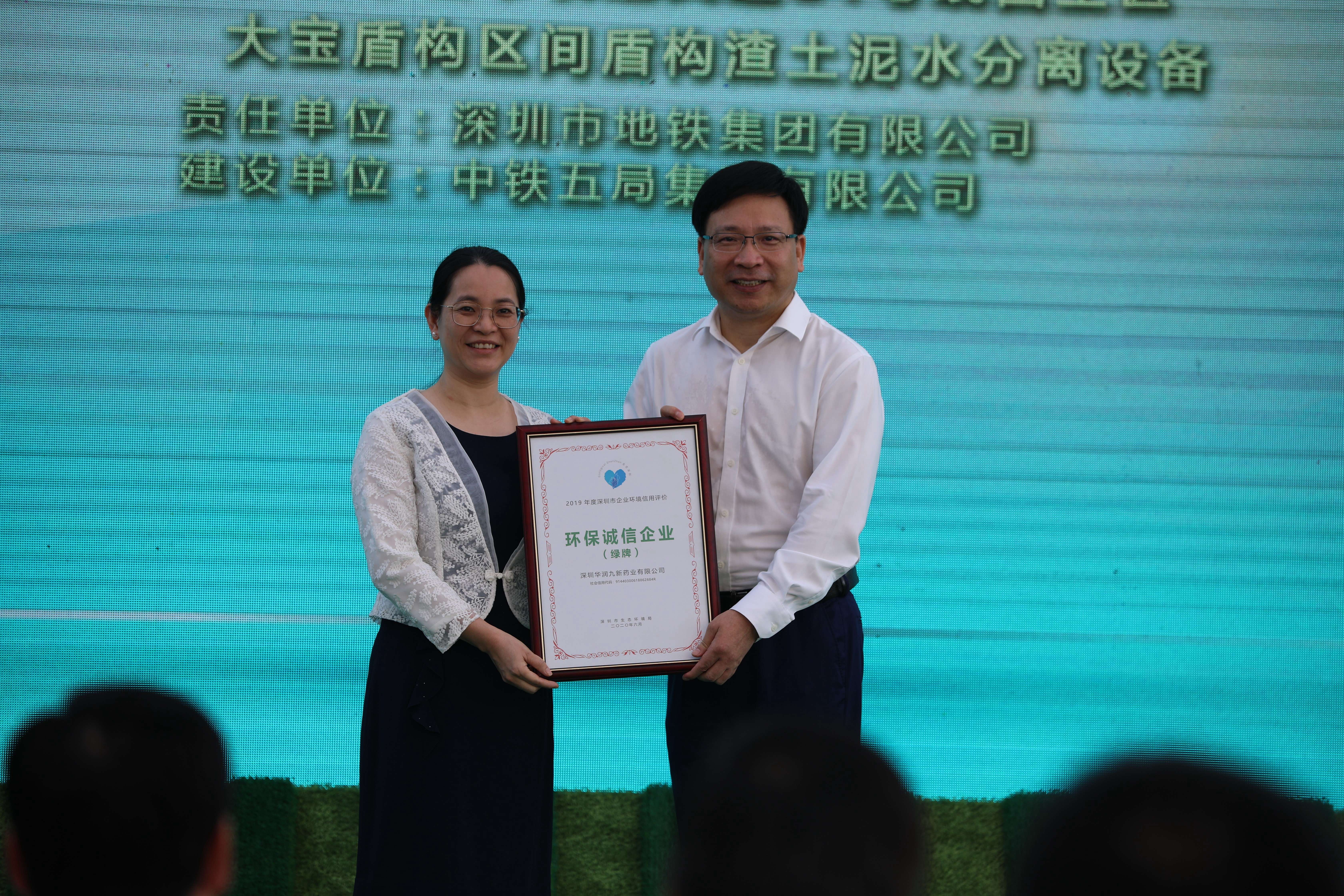 6月5日,深圳華潤九新藥業(yè)有限公司被評為“綠牌”環(huán)保誠信企業(yè),全市僅7家企業(yè)被授予“綠牌”。