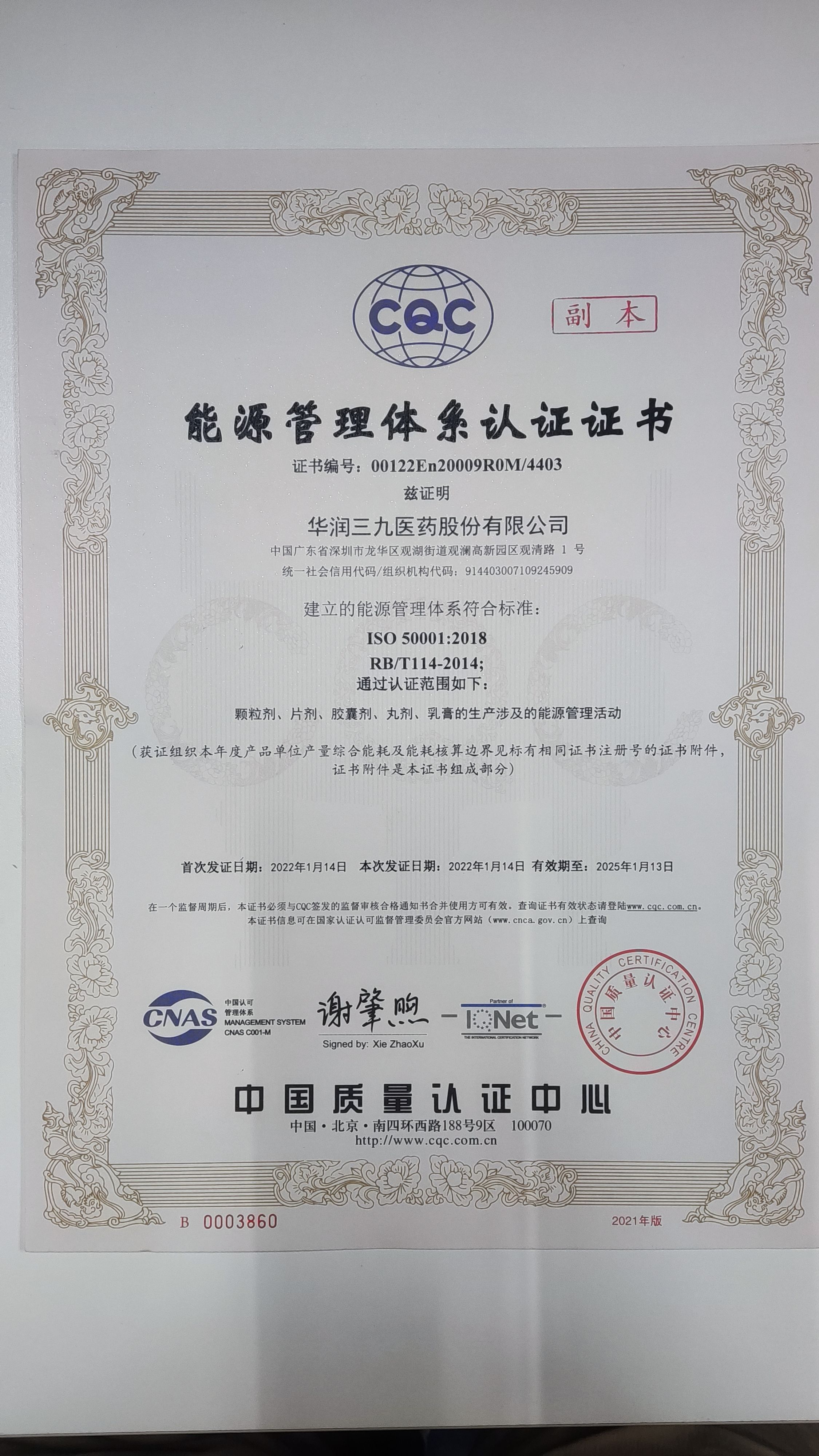 華潤三九觀瀾基地通過ISO50001能源管理體系認證,近日收到認證證書。目前,觀瀾基地能源管理體系建設(shè)、生產(chǎn)節(jié)能管理在科學(xué)化、規(guī)范化、標準化等方面取得了顯著成效,力促碳達峰和碳中和“雙碳目標”的達成。