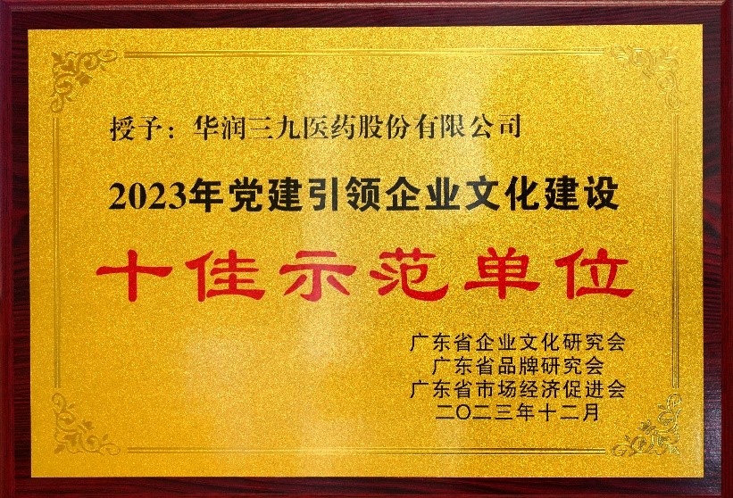華潤(rùn)三九獲評(píng)“2023年黨建引領(lǐng)企業(yè)文化建設(shè)十佳示范單位”