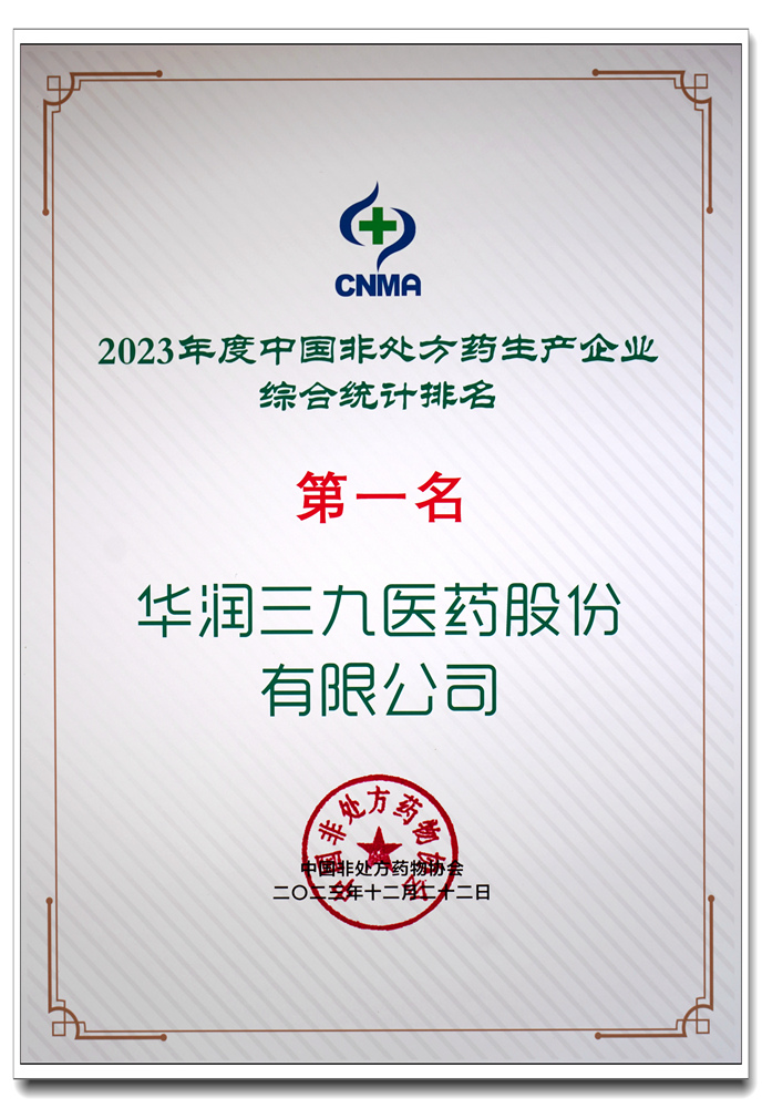 了解更多>>>華潤(rùn)三九蟬聯(lián)“2023年度中國(guó)非處方藥生產(chǎn)企業(yè)排行榜”第一名