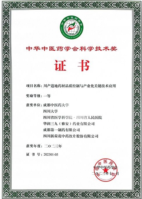 2023年度中華中醫(yī)藥學(xué)會(huì)科學(xué)技術(shù)獎(jiǎng)評(píng)審結(jié)果于近日發(fā)布,華潤(rùn)三九“川產(chǎn)道地藥材品質(zhì)控制與產(chǎn)業(yè)化關(guān)鍵技術(shù)應(yīng)用”科研項(xiàng)目榮獲科學(xué)技術(shù)獎(jiǎng)一等獎(jiǎng)。