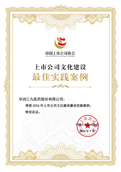 華潤(rùn)三九獲評(píng)“2024年上市公司文化建設(shè)最佳實(shí)踐案例”