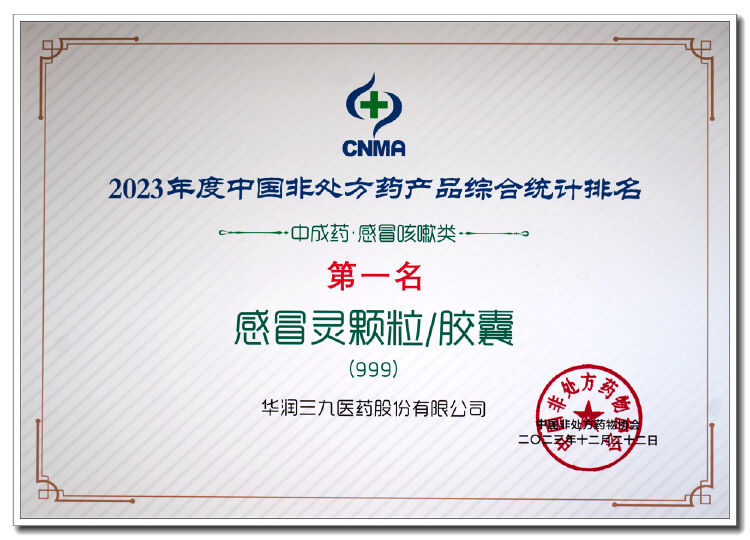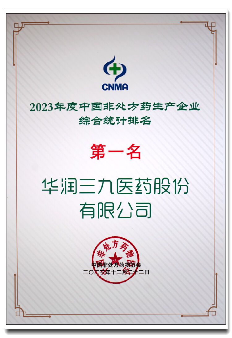 華潤三九蟬聯(lián)“2023年度中國非處方藥生產(chǎn)企業(yè)排行榜”第一名