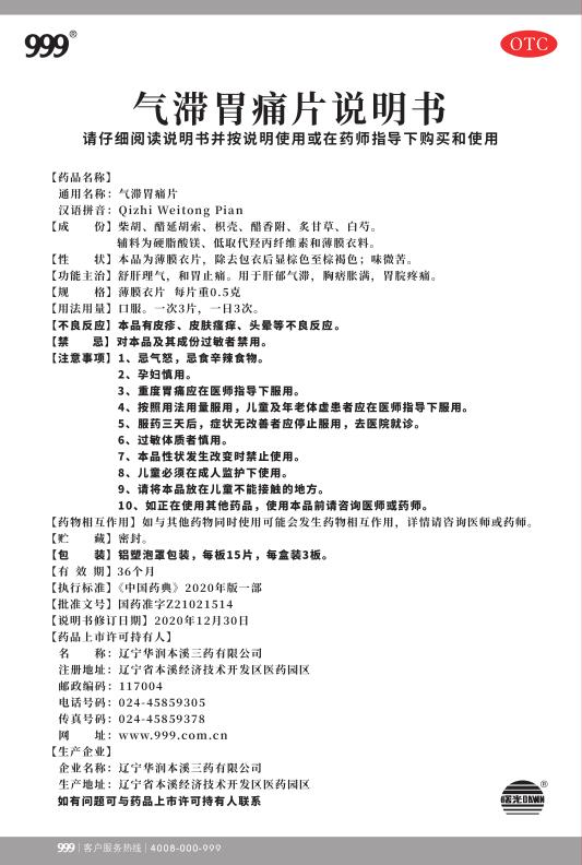 氣滯胃痛片15片x3板