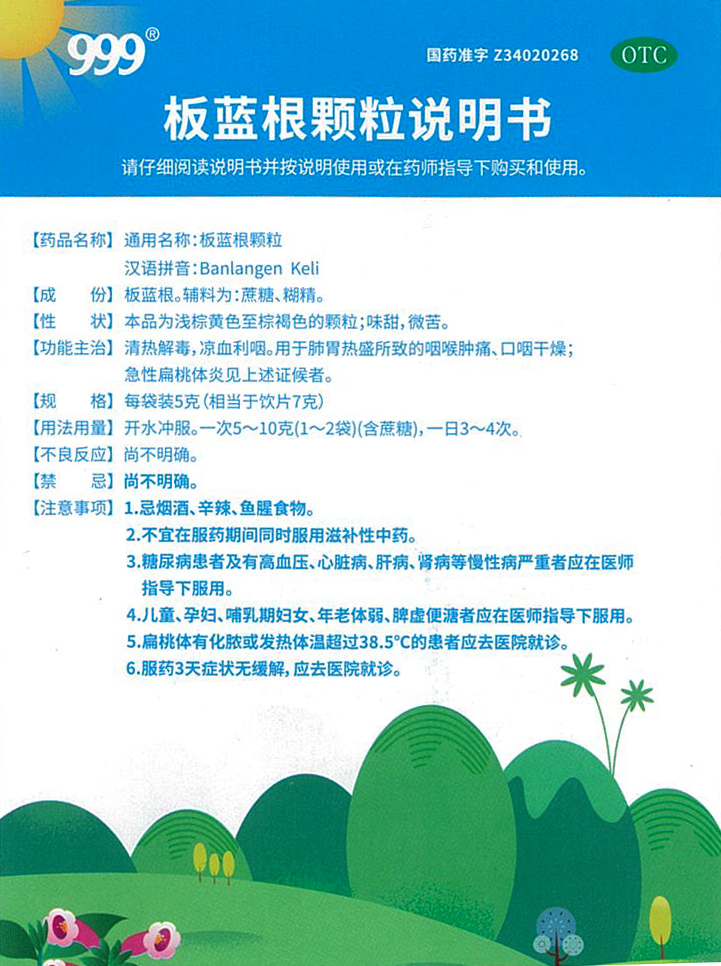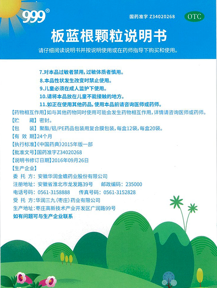 板藍(lán)根顆粒說(shuō)明書(shū)(正面)