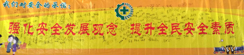 “安全生產(chǎn)月”動(dòng)員會(huì)上,主管以上管理人員在承諾橫幅上簽名。