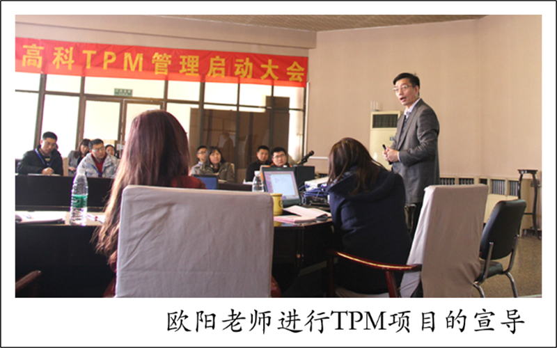 會議由公司生產(chǎn)總監(jiān)主持。會議的召開標志著公司全面推行TPM工作。會議公布了TPM領(lǐng)導小組及實施小組組織架構(gòu)。推進TPM管理,旨在通過消滅生產(chǎn)的災害、事故、故障和其它浪費,并追求設備的安全、連續(xù)、穩(wěn)定,營造整潔的工作環(huán)境,打造設備標準化管理體系,提高員工綜合素質(zhì),提高生產(chǎn)綜合效率,提升現(xiàn)場管理水平,提升企業(yè)競爭力。