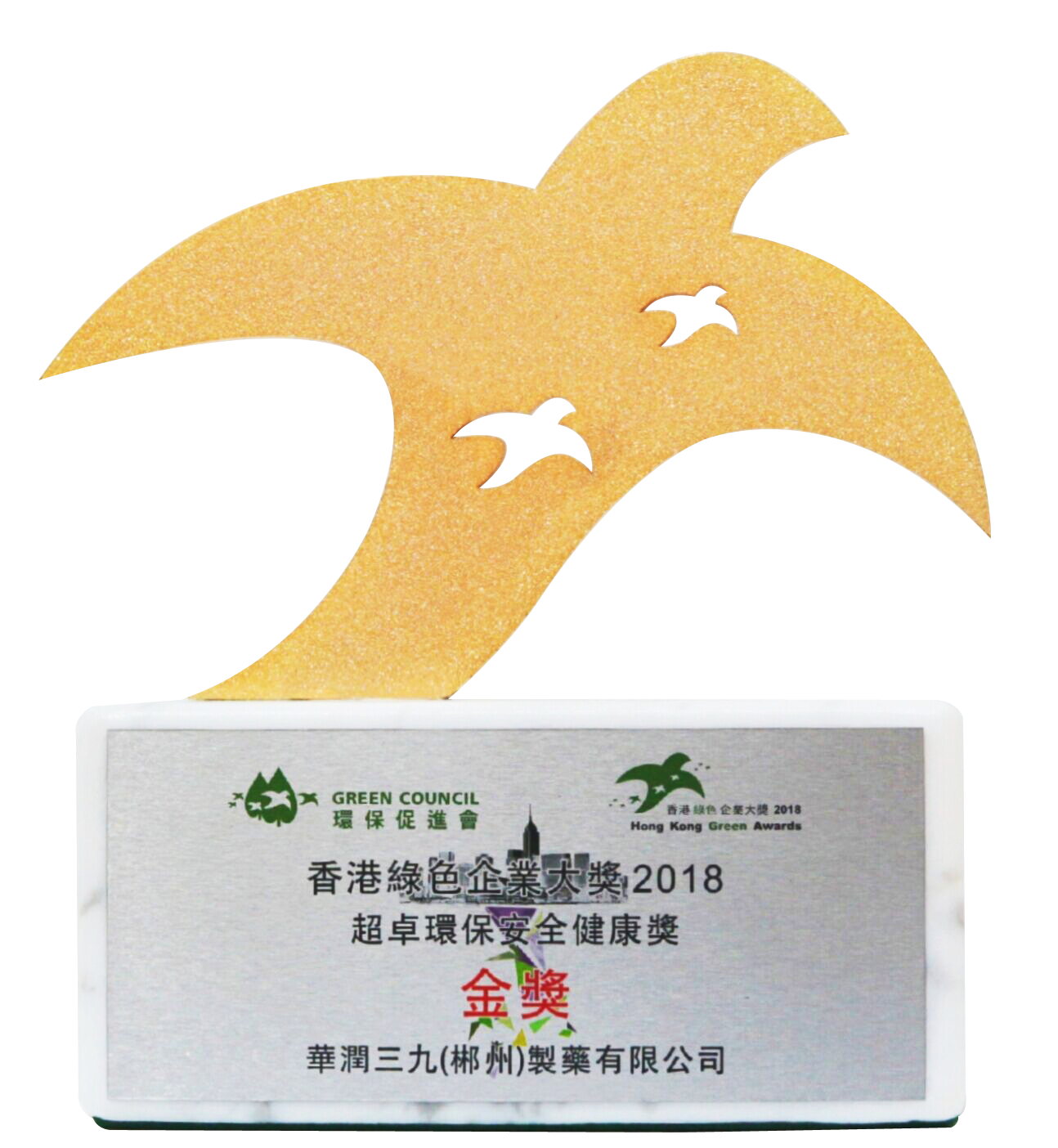 2018年10月,香港環(huán)保促進會發(fā)布年度香港綠色企業(yè)大獎獲獎名單,華潤三九(郴州)榮獲“超卓環(huán)保安全健康獎”金獎。