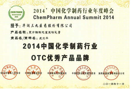 中國化學(xué)制藥行業(yè)年度峰會由中國化學(xué)制藥工業(yè)協(xié)會、中國醫(yī)藥商業(yè)協(xié)會、中國非處方藥物協(xié)會、中國醫(yī)藥企業(yè)發(fā)展促進(jìn)會、國藥勵展展覽有限責(zé)任公司共同主辦,峰會發(fā)布了“2014中國化學(xué)制藥行業(yè)優(yōu)秀企業(yè)和優(yōu)秀產(chǎn)品品牌”。華潤三九皮炎平與輝瑞的鈣爾奇、中美天津史克的芬必得、西安楊森的達(dá)克寧等多個(gè)產(chǎn)品品牌一起獲得該項(xiàng)榮譽(yù)?! 。ㄍ跖d旺)