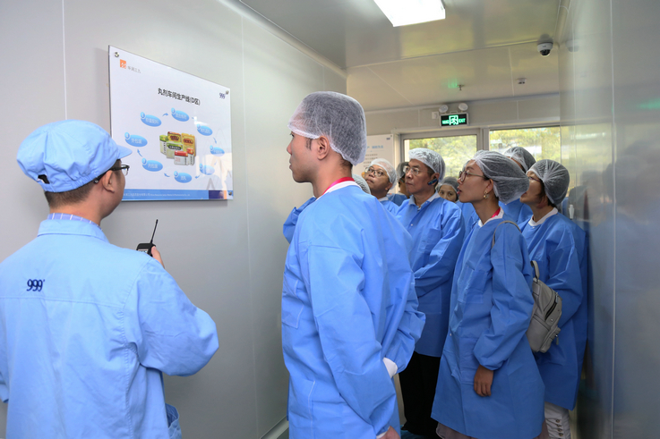 活動(dòng)中,各位嘉賓實(shí)地參觀榮獲華潤(rùn)集團(tuán)“六星級(jí)工廠”的觀瀾基地,深入丸劑、顆粒劑等車(chē)間生產(chǎn)一線,了解藥品制造的產(chǎn)能、工藝、工序、流程,以及產(chǎn)品質(zhì)量控制、安全環(huán)保措施等情況。