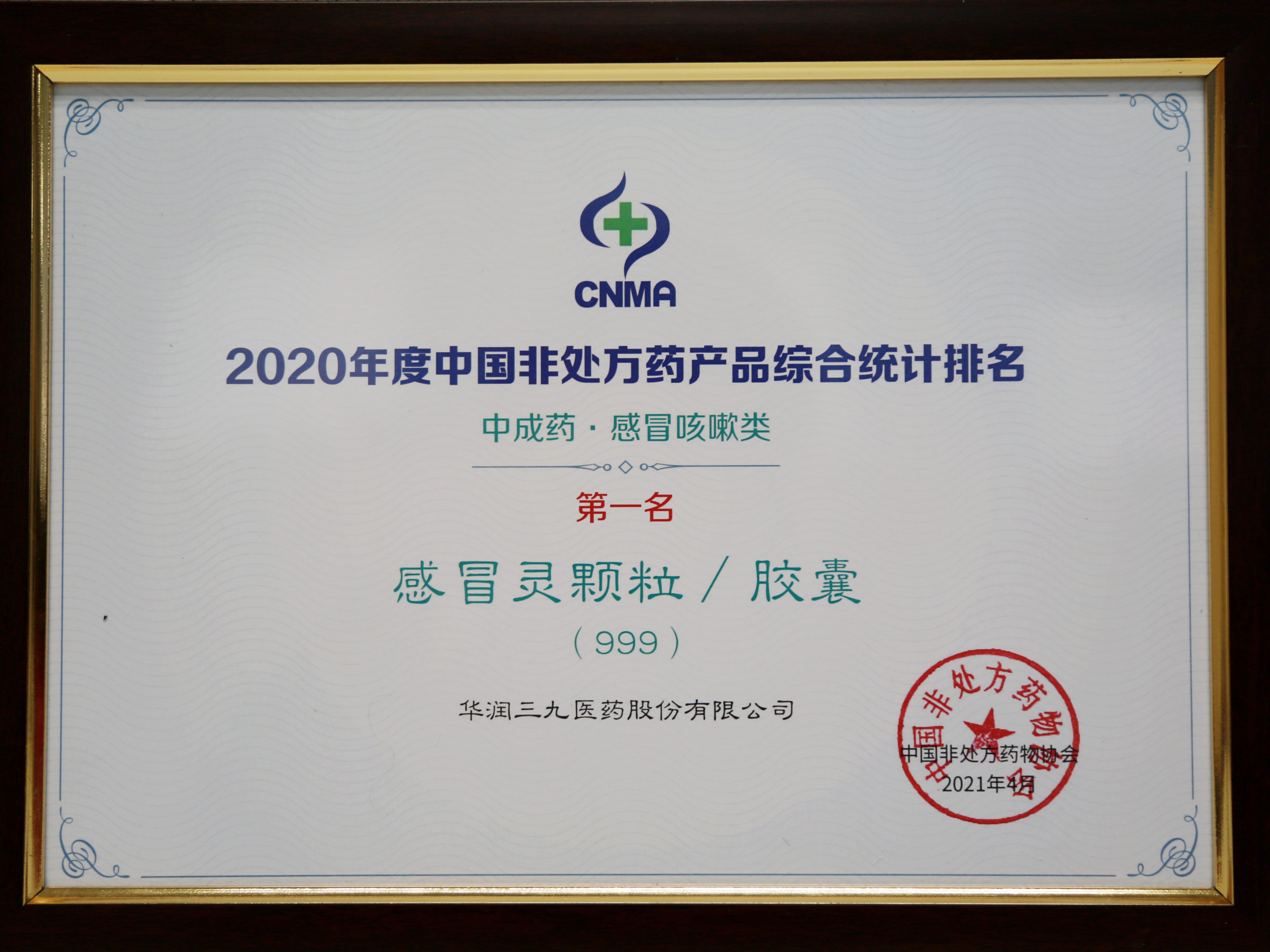 4月1日,由中國非處方藥協(xié)會主辦的“第十七屆中國自我藥療年會”,發(fā)布了2020年度中國非處方藥生產(chǎn)企業(yè)綜合統(tǒng)計排名,華潤三九再次榮登榜首。此外,999感冒靈顆粒/膠囊連續(xù)九年蟬聯(lián)感冒咳嗽類(中成藥)第一名,999復方醋酸地塞米松乳膏、多烯磷脂酰膽堿膠囊(易善復)、999復方感冒靈顆粒在各自的品類排名中斬獲前三甲。