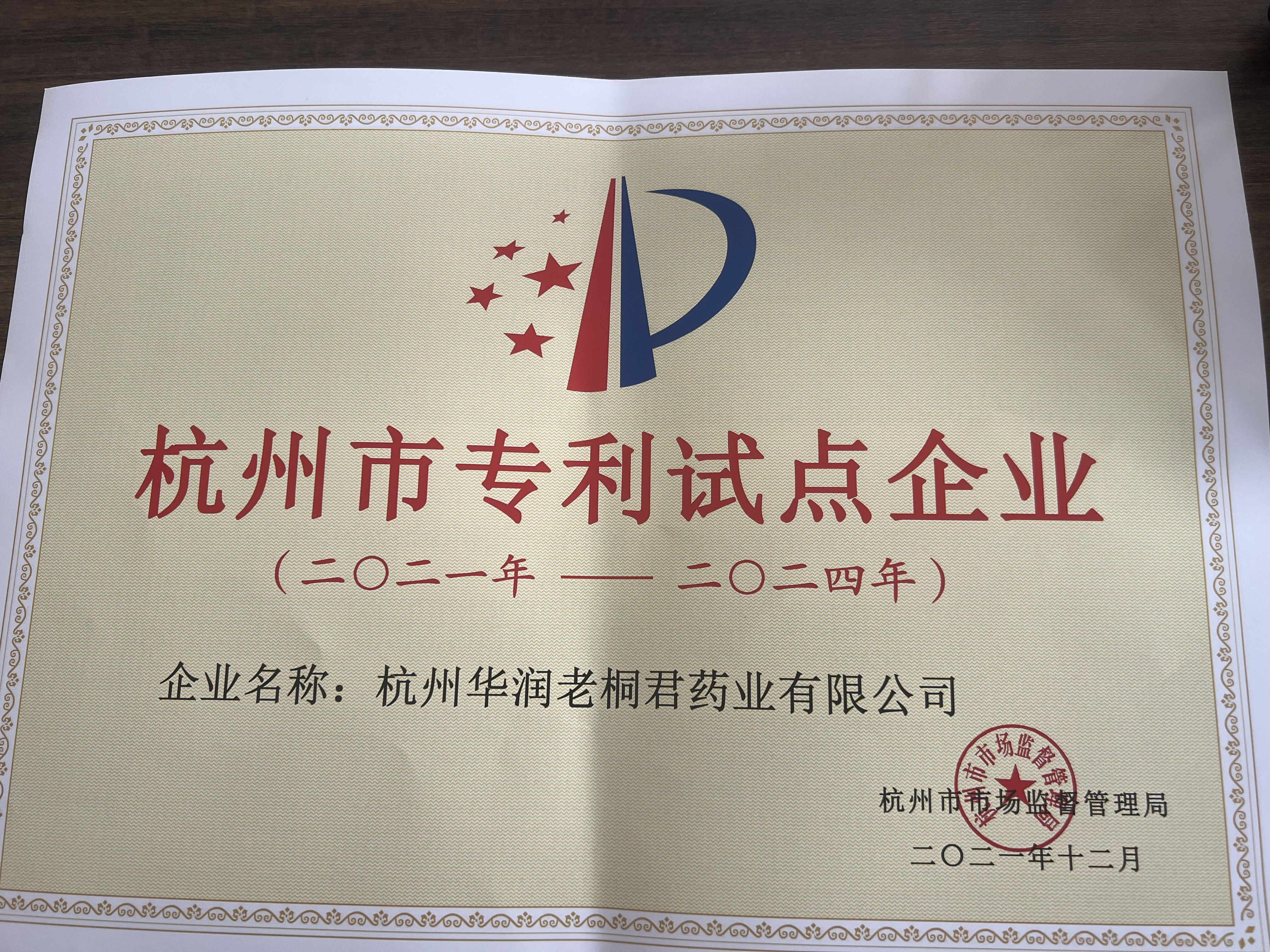 華潤(rùn)老桐君獲評(píng)“杭州市專利試點(diǎn)企業(yè)”
