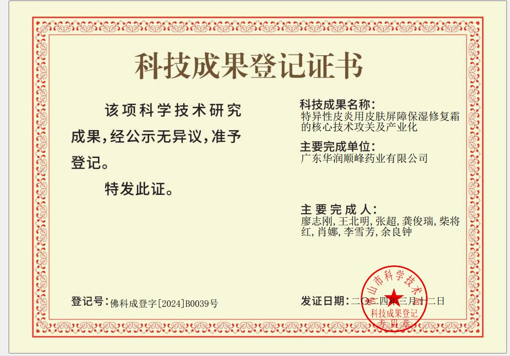 我司科研團(tuán)隊(duì)成功攻克特異性皮炎用皮膚屏障保濕修復(fù)霜的核心技術(shù),并實(shí)現(xiàn)了產(chǎn)業(yè)化。經(jīng)過鑒定,該技術(shù)具有國(guó)內(nèi)領(lǐng)先水平。該成果的取得,不僅展現(xiàn)了我司在皮膚大健康領(lǐng)域科技創(chuàng)新的實(shí)力,也為廣大特異性皮炎患者帶來了福音。
