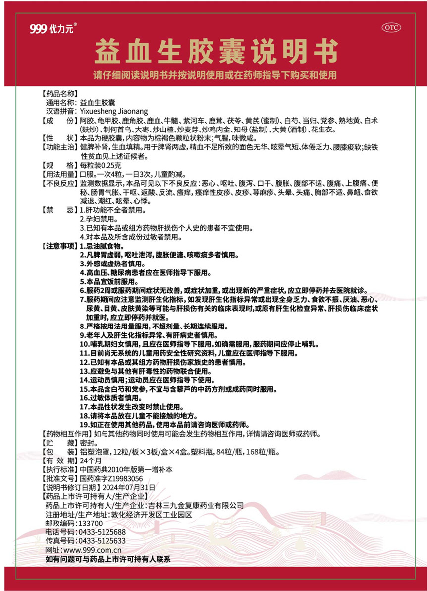益血生膠囊說明書 請仔細閱讀說明書并按說明使用或在藥師指導下購買和使用 【藥品名稱】通用名稱:益血生膠囊 漢語拼音:Yixuesheng Jiaonang