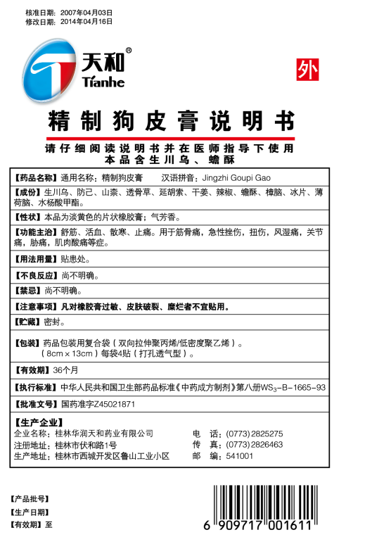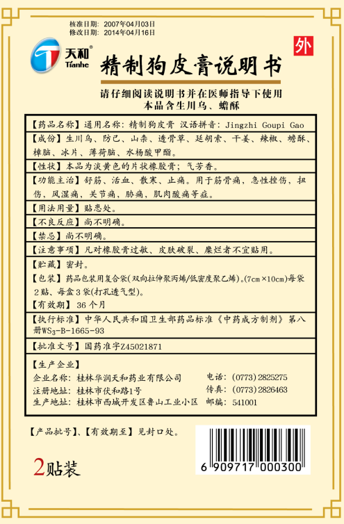 舒筋、活血、散寒、止痛。用于筋骨痛,急性挫傷,扭傷,風濕痛,關(guān)節(jié)痛,脅痛,肌肉酸痛等癥。