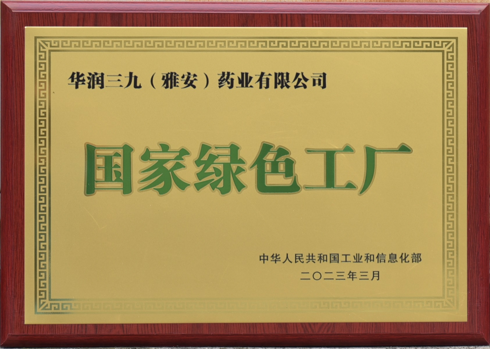 華潤(rùn)三九(雅安)獲評(píng)2022年度國(guó)家綠色工廠